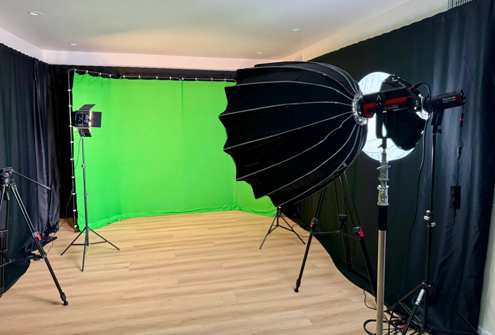 The studio is equipped with high-quality Aputure lighting systems, softboxes, and modifiers to give you total control over your scene. Whether you’re producing interviews, commercials, livestreams, music videos, or product shoots, this space ensures consistent, polished results.