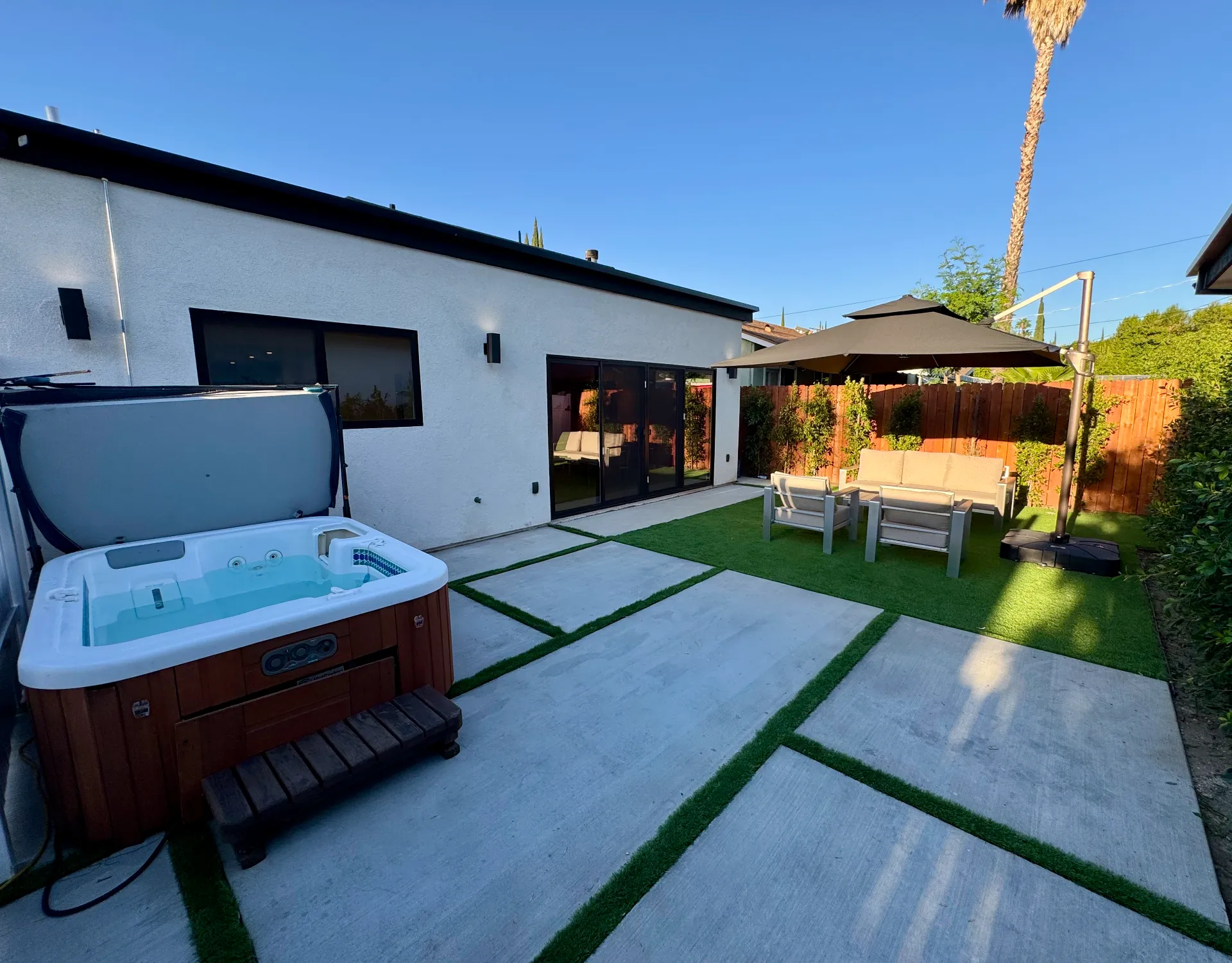 Studio 1 – Modern Resort Villa with Jacuzzi The Modern Content Villa features an expansive floor plan with natural light, a large designer kitchen, and a resort-style backyard that can be used for different types of shoots.